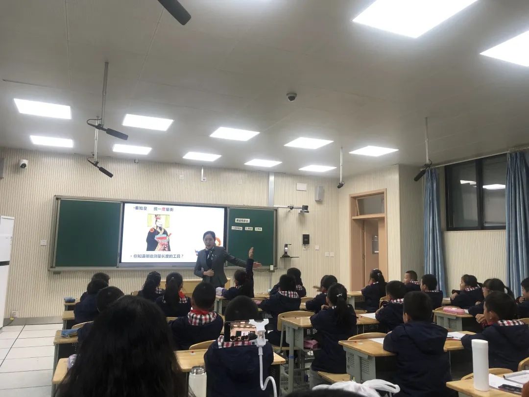 ▲ 成都武侯區外國語學校曾玉老師執教《課桌有多長》