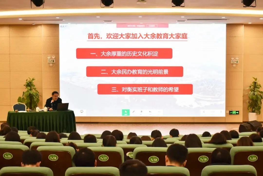 12月28日,高新·大余衡水實(shí)驗(yàn)學(xué)校特邀大余縣教科體局黨委書記、局長(zhǎng)曾凡偉到校,為全體教師生開展題為《立足教育熱土,厚植家國(guó)情懷》的專題講座。會(huì)議上,曾局長(zhǎng)從大余的歷史文化積淀、民辦教育前景兩方面簡(jiǎn)析,并對(duì)大余衡實(shí)的教師們寄予厚望。