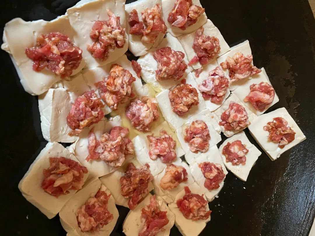 在我們岑溪,飲食文化簡直可以用“無釀不成餐”來形容。把肉餡填入不同的瓜菜或豆制品中,或煎炒或燜燉,煮熟后美名其曰“釀”。在豆腐釀、竹筍釀、瓜花釀、茄子釀、苦瓜釀、切瓜釀、南瓜釀、辣椒釀、柚皮釀等眾多的“釀”中,最負盛名當首推“豆腐釀”。豆腐釀是這里家家戶戶的傳統飲食,逢年過節、招待客人時,也是不可少的“招牌菜”。因此,岑溪當地有句名言:“親戚來,劏雞磨豆腐咯。”
