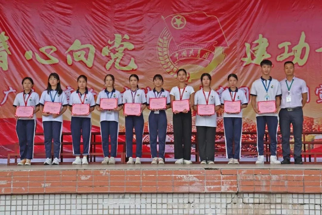 廣東省高新技術高級技工學校新團員入團宣誓儀式暨優秀團組織表彰大會于2019年5月27日16:10在西區足球場隆重舉行。參加本次大會的領導有:文建友副校長、學生處曾成處長、學生處陳偉副處長、團委書記劉榮榮、汽車工程系鄭大國主任、藝術與計算機系王慶有副主任、經貿系姚幸連副主任。參加大會的還有在校1833名團員。