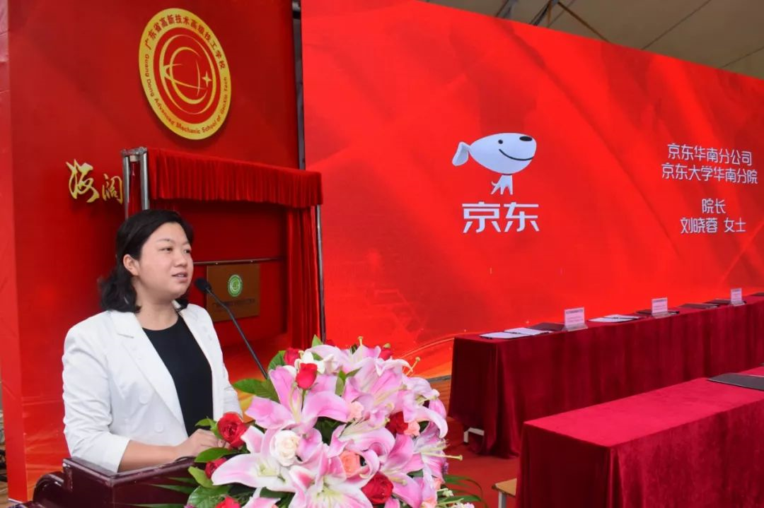 作為長期與我校保持良好合作關系的校企代表之一,京東華南區分公司京東大學華南分院院長劉曉蓉發表了講話,她提到,京東和高新合作已經有兩三年了,希望高新在新的征程里,能夠發揮民辦學校的優勢,共同培養技術上更貼近市場業務需求的人才,探討更科學的人才培養模式,同樣京東也會一如既往的支持高新技校,攜手為社會提供更多的有溫度有深度的高新人才。