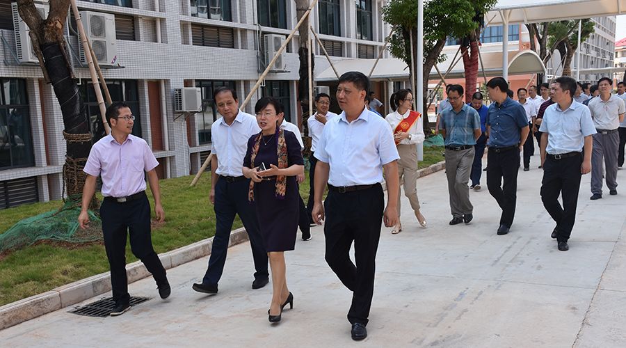 鐘旭輝書記一行邊走邊聽介紹,對我縣引進高新教育集團,高標準、高品位的建設大余衡實給予了高度評價,并希望我校能與信豐縣學校常來常往,互學互鑒,共同為兩縣教育的發展做出更多貢獻。