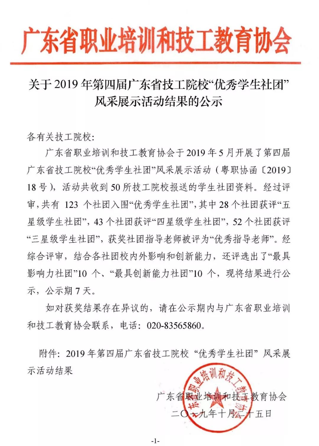 本次活動共有 123 個社團入圍“優秀學生社團”,其中28個社團獲評“五星級學生社團”,43個社團獲評“四星級學生社團”,52個社團獲評“三星級學生社團”,獲獎社團指導老師被評為“優秀指導老師”。
