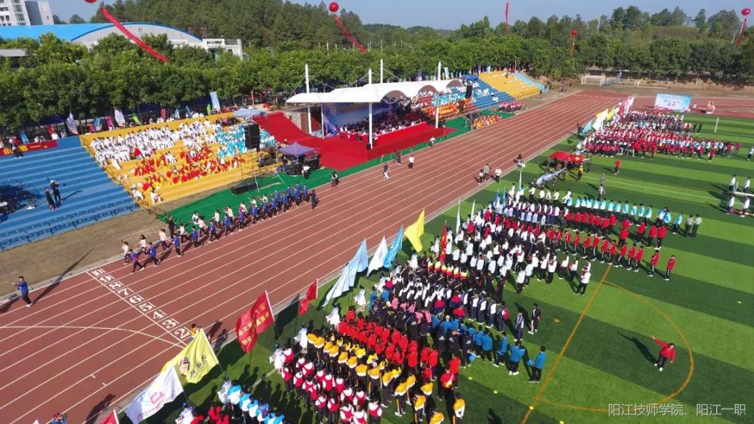 2019年11月28、29日,廣東省技工院校教研會第六屆田徑運動會在陽江技師學院運動場隆重舉行,全省共46所廣東院校參與了本屆運動會,1400余名運動員歡聚運動場上青春飛揚,活力迸發(fā)!加上參賽者、組織者、觀賽者在內(nèi),一場萬人在線的技能人運動大狂歡精彩上演!