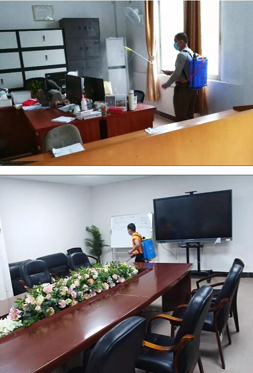 清潔消毒工作每天早上8點開始,對目前有人員出入和逗留的場所會每天消毒一次,如校門值班室、總務(wù)處、已返校教職工宿舍。已返校人員每天接受三次體溫檢測。校門崗將嚴格執(zhí)行到訪人員信息登記、車輛檢查、體溫檢測。