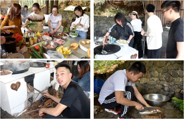 讀書沙龍活動(dòng)結(jié)束,大家集體殺到A哆自助廚房,吃貨們期待已久的柴火飯開始。隨著鐘校的一聲令下,大家一個(gè)個(gè)化身廚房小能手,有燒火的、洗鍋洗碗的、洗菜切菜的、燒烤的、還有燒飯的大廚,整個(gè)場(chǎng)面熱火朝天,三十多人的飯菜,僅用時(shí)40多分鐘就完成了,充分體現(xiàn)了大余衡實(shí)小學(xué)部老師們的協(xié)作能力、凝聚力、戰(zhàn)斗力。