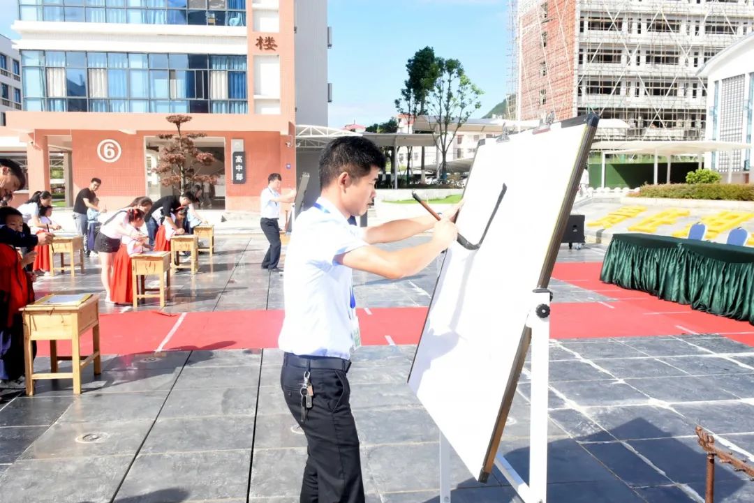 碧空如洗,秋高氣爽。為弘揚(yáng)中華傳統(tǒng)文化精神,9月16日上午,大余衡水實驗學(xué)校隆重舉行“開蒙啟智  習(xí)禮明德”一年級新生開筆禮儀式。大余衡水實驗學(xué)校校長王躍平,副校長彭艷華,小學(xué)部校長鐘小娟,校長助理簡東英,小學(xué)部教務(wù)主任謝林燕、副主任黃婷,以及一年級全體新生家長和老師共同見證了此次莊重的開筆禮儀式。