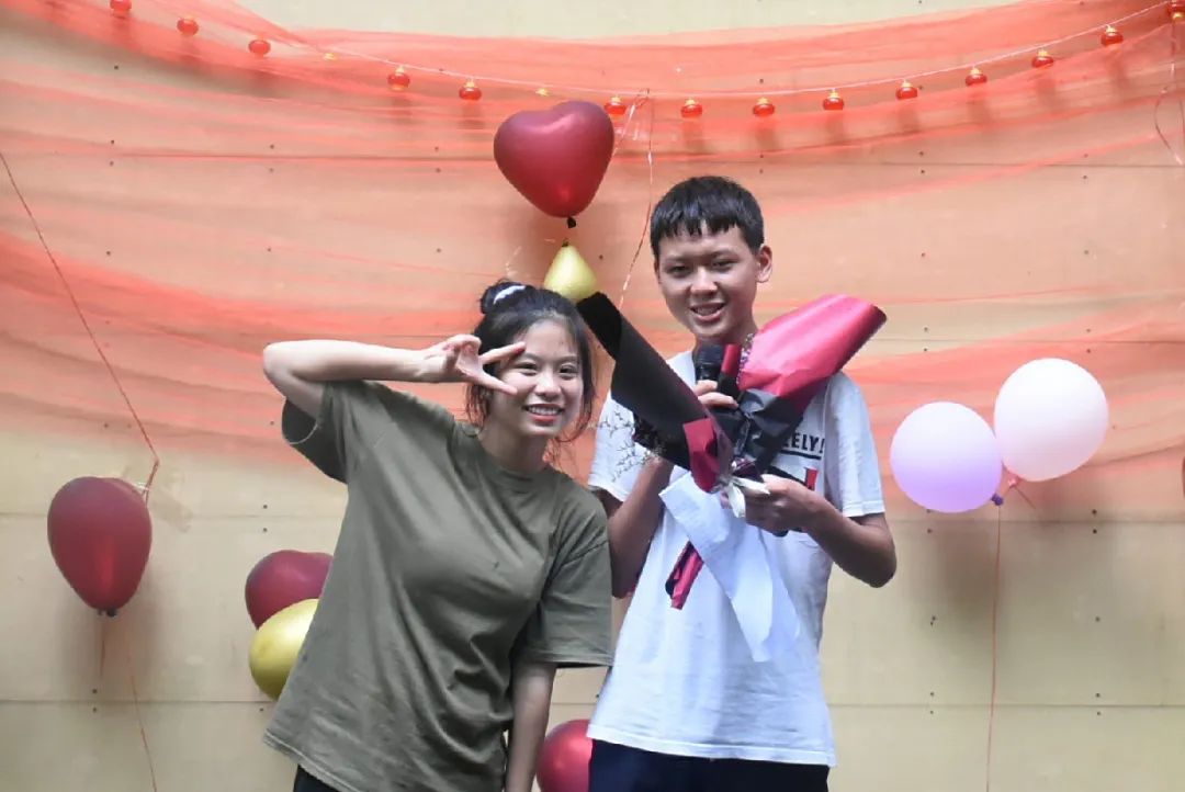 吃飽喝足便是節目表演環節,老師的《日不落》活躍氣氛,現場成為打歌舞臺,輕快酷炫的rap讓大家飽享耳福,搞笑有趣的廣西版《有何不可》讓大家捧腹大笑,熟悉的歌謠使得在底下的觀眾情不自禁地跟唱起來,小伙伴們組成一個個小團隊,在舞臺散發著獨具特色的光芒,歌聲夾著尖叫聲,打call聲響徹丫山,送花合影讓我們更親密了,每個人的臉上都洋溢著笑容,負責接送我們的劉老師最后也按捺不住了,唱起了動聽的經典歌曲《濤聲依舊》和《橋邊姑娘》。