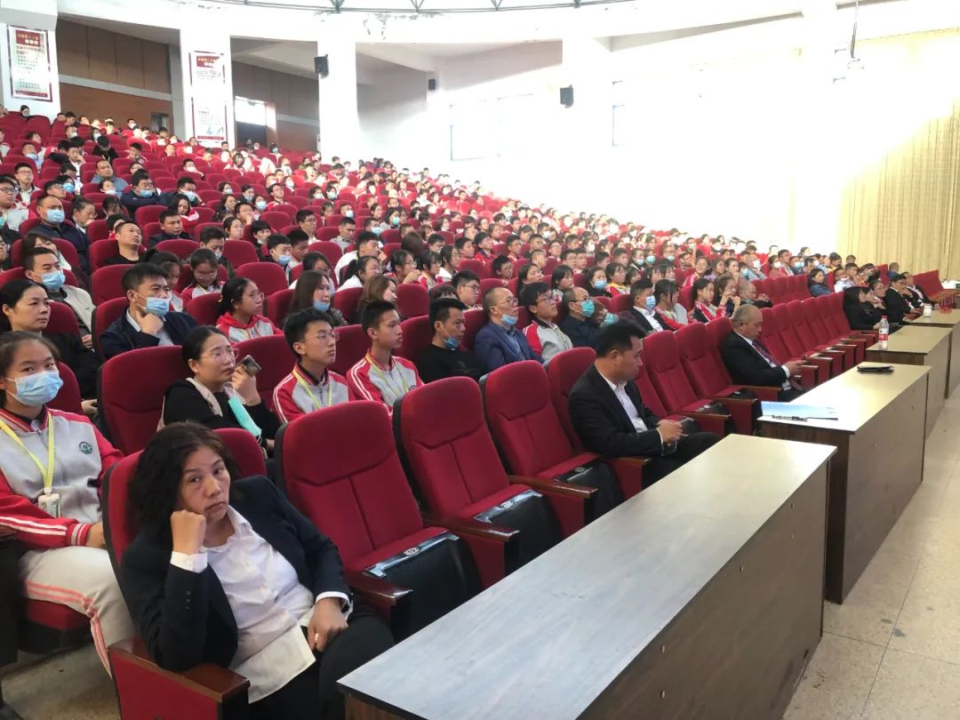 秋深山有骨,霜降水無痕。白露為霜的深秋,在金色陽光的映襯下,大自然正肆意地炫耀著她成熟迷人的風韻。伴隨著空氣中馥郁甘醇的縷縷果香,10月25日下午,我校九年級全體學生、家長、老師齊聚一堂,在大報告廳舉行教師、學生、家長“三位一體”家校溝通會。初中部執行校長謝永中、學校分管安全的時兆鵬校長、招生辦顧玉良主任、教務處陳顯副主任、德育處黃儒峰副主任、八年級王曉云主任等領導參加了此次會議。