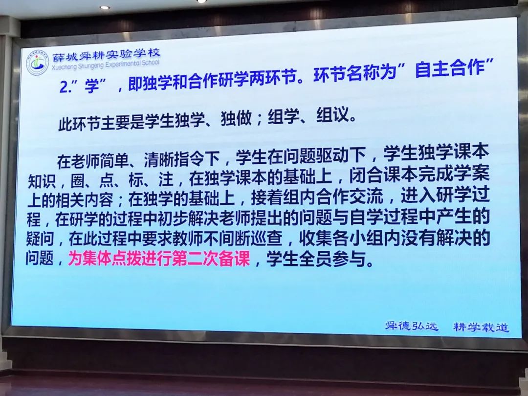 教育專家和大咖們所例舉的成功典范都有一個(gè)共性的地方:把時(shí)間還給孩子,孩子的自主學(xué)習(xí)才能提高學(xué)習(xí)效率。我們可以借鑒的是:課堂和課后把時(shí)間給孩子,在教師精心備課安排好任務(wù),精準(zhǔn)引導(dǎo)下,充分發(fā)揮孩子的主觀能動(dòng)性去學(xué),改被動(dòng)學(xué)習(xí)為主動(dòng)學(xué)習(xí)。這個(gè)過程對(duì)于我們習(xí)慣了灌輸式和填鴨式教學(xué)的老師來說,會(huì)是一個(gè)非常痛苦的過程,但是課堂有改變,學(xué)校才會(huì)改變。課堂模式也不是所有課型都按各個(gè)名校都已經(jīng)驗(yàn)證成功的“導(dǎo)、思、議、展、評(píng)、檢、用”高效6加1課堂教學(xué)七環(huán)節(jié)的模式,可以結(jié)合我校實(shí)際可以先在新授課中試行,從一種到復(fù)習(xí)課和講評(píng)課、習(xí)題課等多種課型逐步過度推行,還可以融入自己的特色,兩者相結(jié)合進(jìn)行優(yōu)化。山東省棗莊市薛城舜耕實(shí)驗(yàn)學(xué)校黃飛校長的報(bào)告貼近實(shí)際,可操作性強(qiáng)。為了真正實(shí)現(xiàn)高效課堂,提出:導(dǎo),即激情導(dǎo)入和目標(biāo)導(dǎo)學(xué)。學(xué),即獨(dú)學(xué)和合作研學(xué)兩環(huán)節(jié)。展,即展示學(xué)習(xí)成果或困惑。評(píng),即點(diǎn)評(píng)精講,歸納總結(jié)。練‘即當(dāng)堂訓(xùn)練。測,即總結(jié)與當(dāng)堂檢測。這就是一個(gè)很接地氣的特色模式。