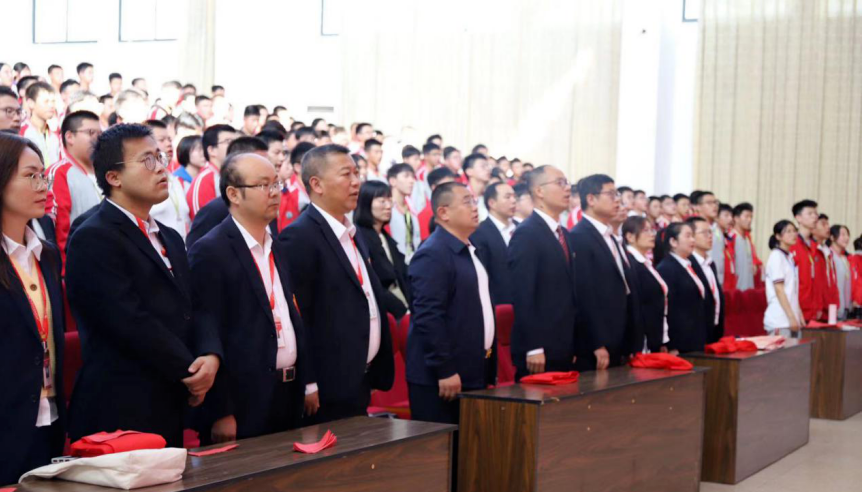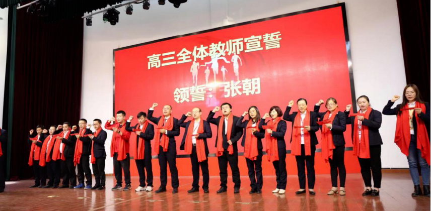 鮮紅的圍巾飄揚,老師們莊嚴宣誓,像軍師一般,為同學們定軍心、昂斗志,讓同學們知道,高考不是我們獨自的戰場,老師們永遠與我們一起戰斗。