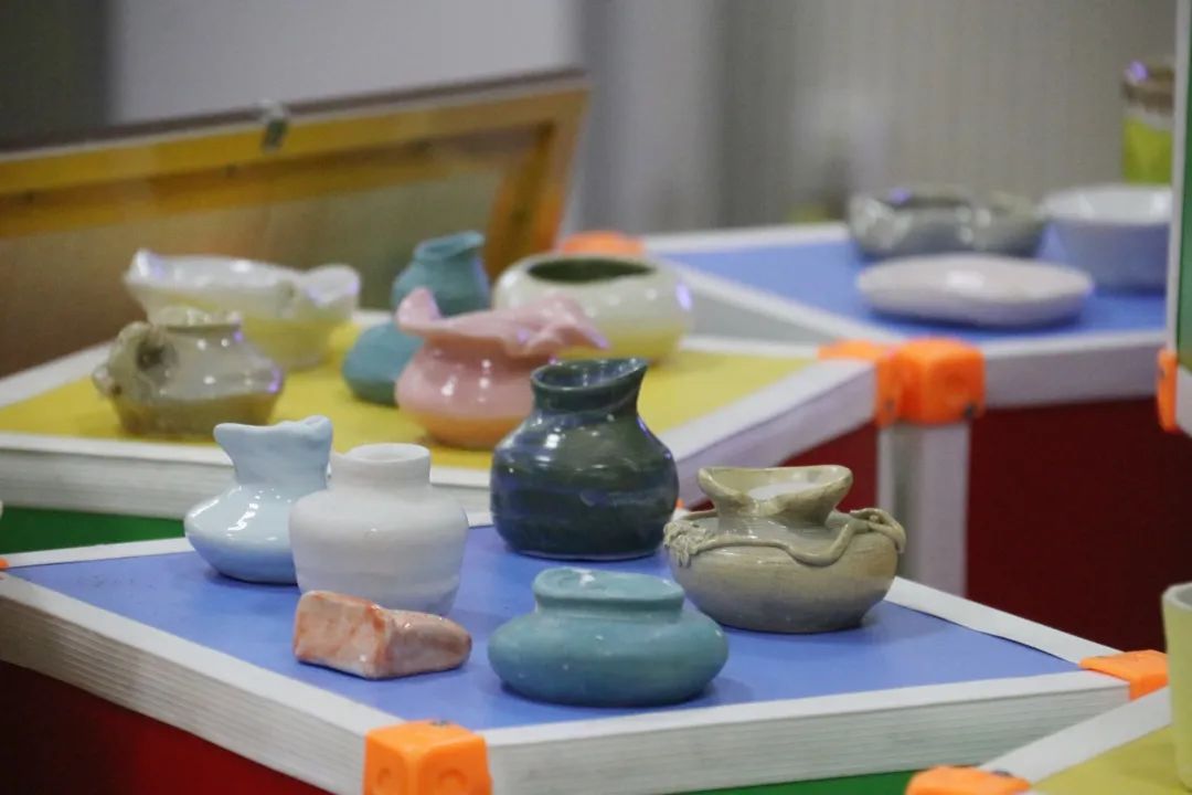 此次展覽共展出校本作品400余件,以校本教材、導學案、3D作品打印、手工、扎染、國畫、書法、陶藝、創意繪畫等創作為主。作品立意獨特,想象奇妙,童趣盎然,突出了鮮明的時代主題。此次校本作品展覽既是素質教育的展示、也是審美情趣的展示,在孩子們的作品中,我們可以看到他們將國畫、扎染、手工、書法等技藝嫻熟運用。