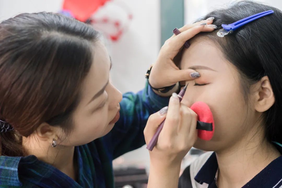 “本學期19級的化妝與造型實訓由我授課,根據不同的應用場合,我們會學習到晚宴妝、主持人妝、新娘妝,職場妝,還有一些特殊妝容如影視劇里面的老人妝、話劇活動里面的創意妝等等,以及對應的造型設計。”