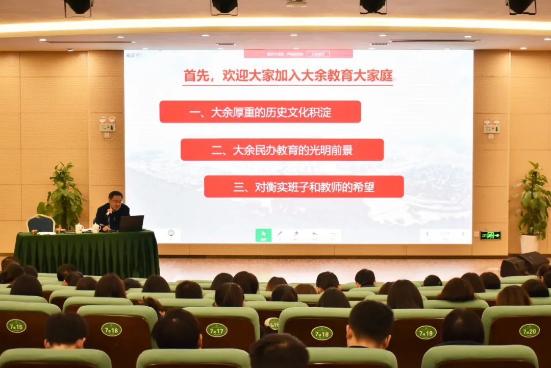 冬日微寒,層林盡染。12月28日晚上,大余衡水實(shí)驗(yàn)學(xué)校報(bào)告廳內(nèi)不時(shí)爆發(fā)出熱烈的掌聲,一場(chǎng)由大余縣教科體局黨委書記、局長曾凡偉主講,主題為《立足教育熱土,厚植家國情懷》的講座正在如火如荼地進(jìn)行。講座由王躍平校長主持,大余衡水實(shí)驗(yàn)學(xué)校全體教師到場(chǎng)聆聽。