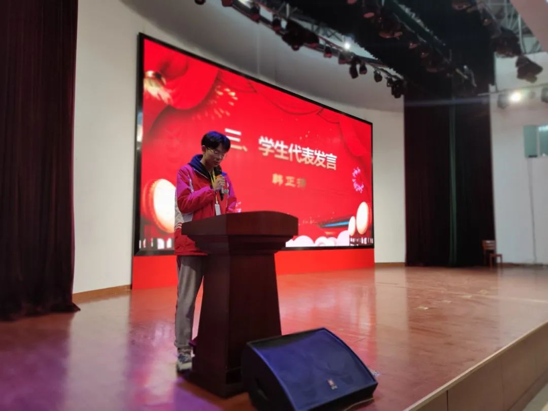 表彰之后,學(xué)生代表韓正揚(yáng)同學(xué)進(jìn)行了發(fā)言,他以自身不懈奮斗取得優(yōu)異成績的經(jīng)歷,勉勵(lì)各位同學(xué),告訴大家“既然選擇了遠(yuǎn)方,便只顧風(fēng)雨兼程”,未來是屬于努力的人的。