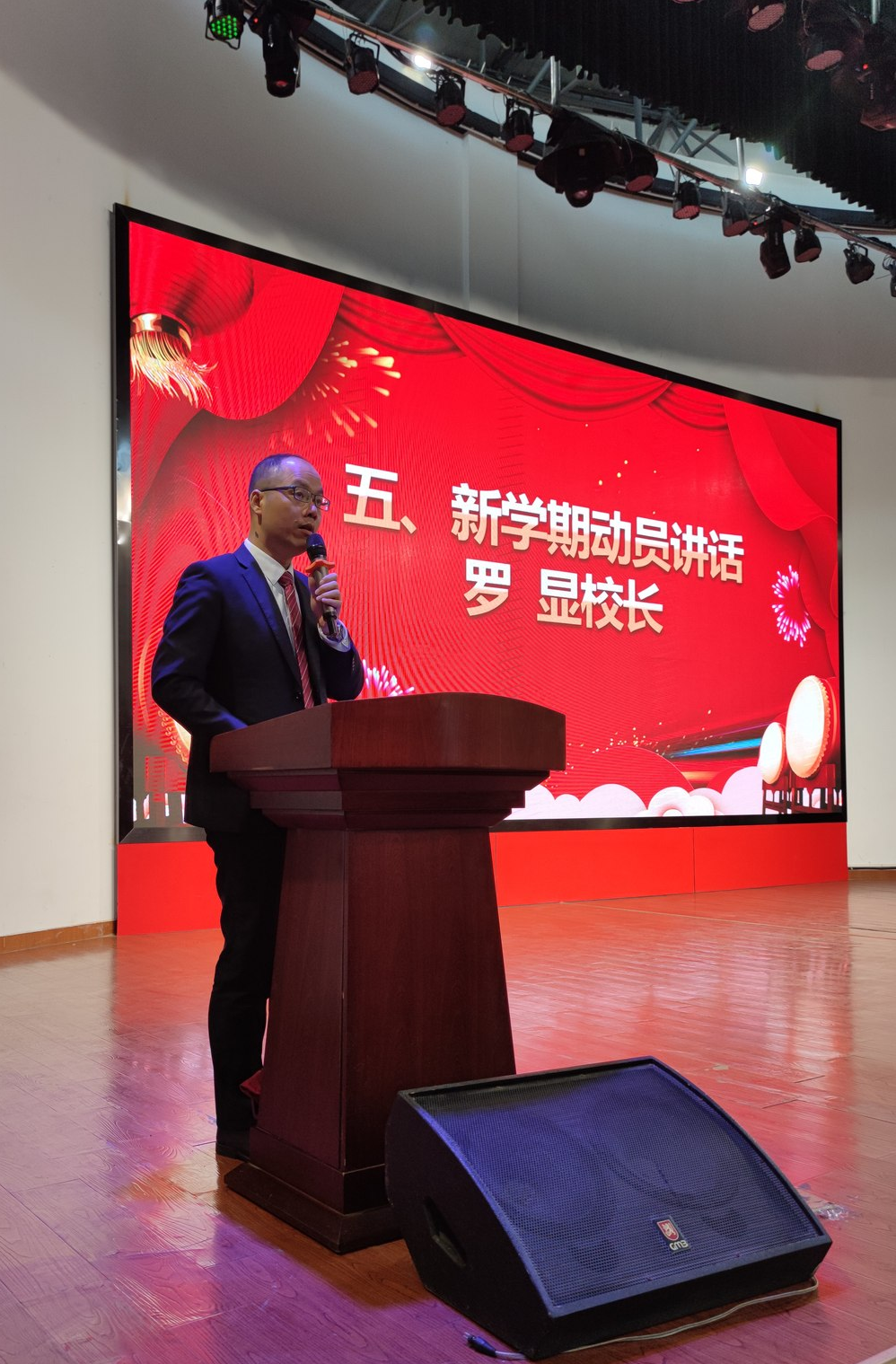 最后,高中部羅顯校長發(fā)表了新學(xué)期動(dòng)員講話,在總結(jié)了上個(gè)學(xué)期之后,羅校長為高一、高二、高三每個(gè)年級(jí)設(shè)定了期末目標(biāo)。開學(xué)典禮在羅校長激昂的講話聲中結(jié)束。